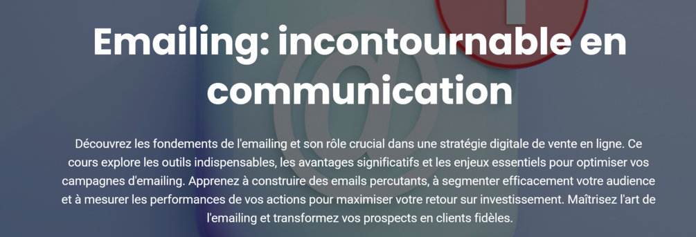 Ce cours explore les outils indispensables, les avantages significatifs et les enjeux pour optimiser vos campagnes d'emailing.