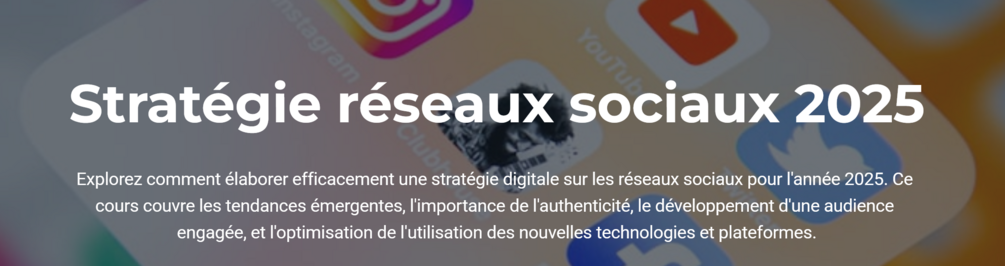 Explorez comment élaborer efficacement une stratégie digitale sur les réseaux sociaux pour l'année 2025. Ce cours couvre les tendances émergentes, l'importance de l'authenticité, le développement d'une audience engagée, et l'optimisation de l'utilisation des nouvelles technologies et plateformes.