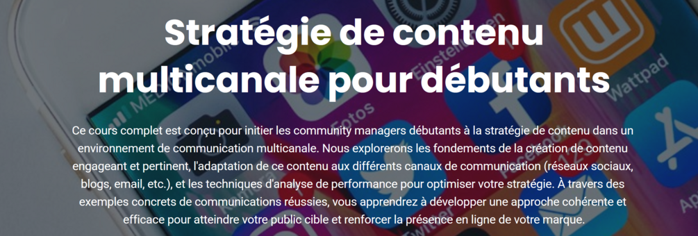 Ce cours complet est conçu pour initier les community managers débutants à la stratégie de contenu dans un environnement de communication multicanale.